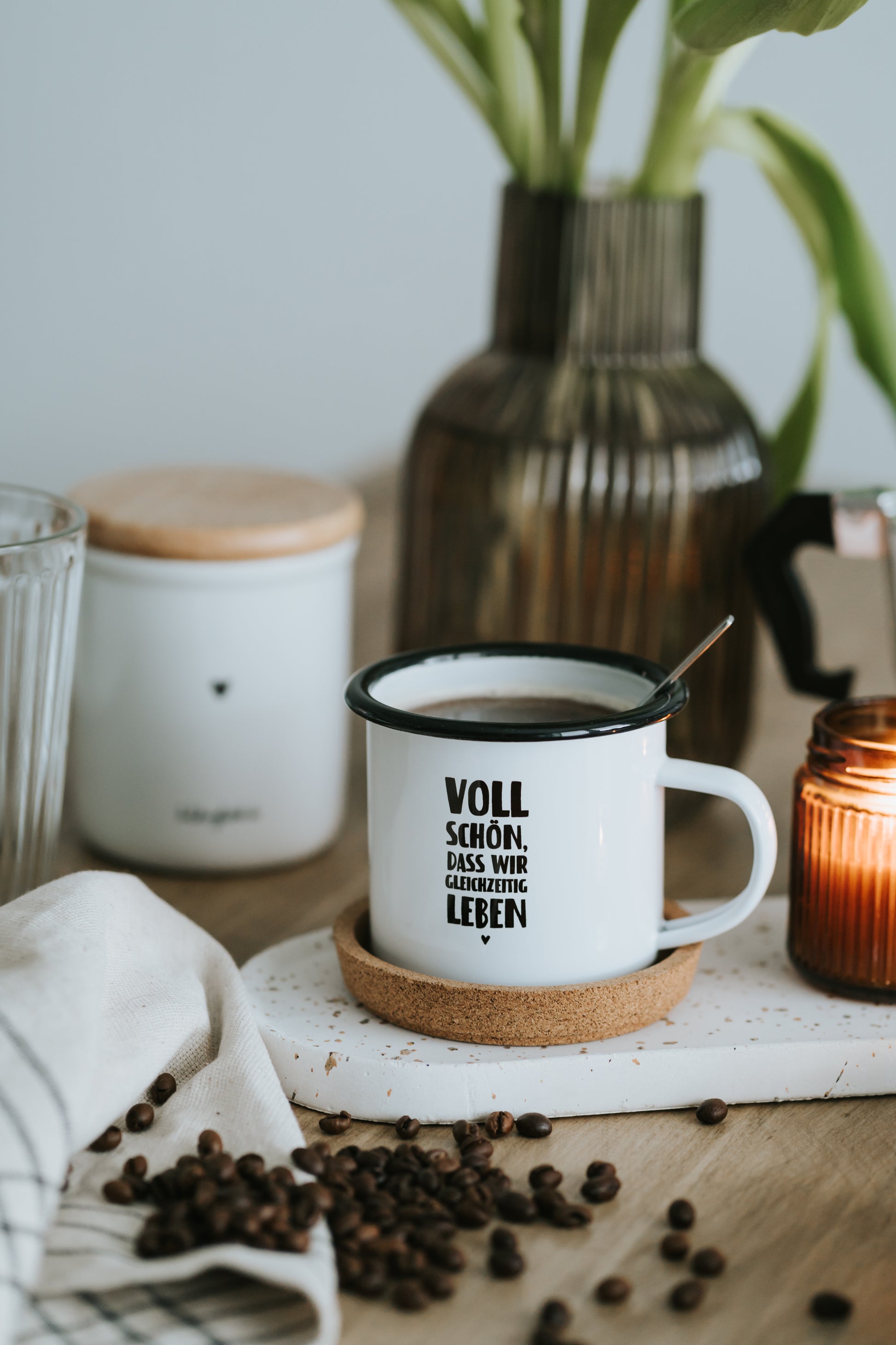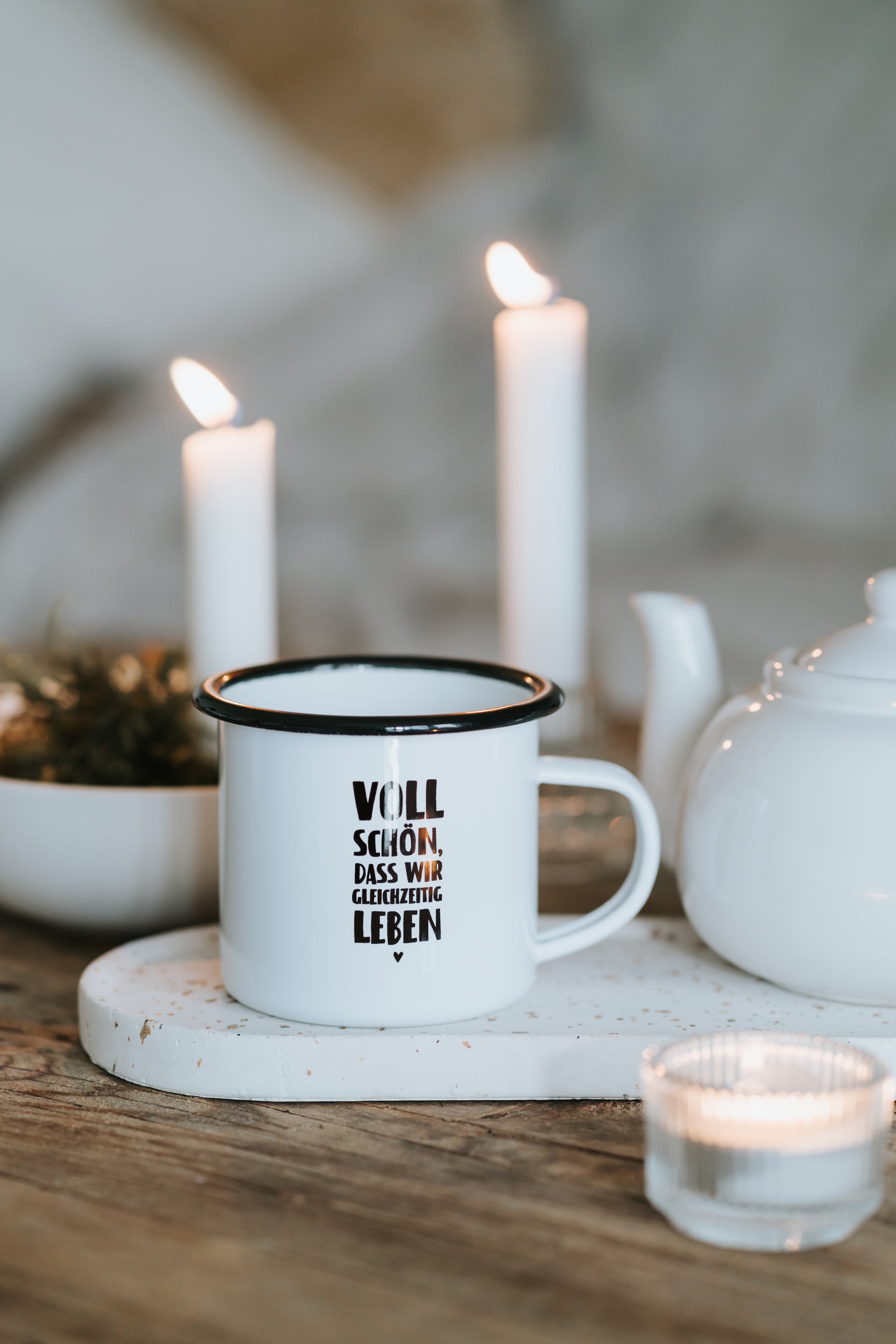 Ob kochend heiß oder erfrischend kalt: Mit unseren Emaille-Tassen kannst Du alle Getränke genießen. Nur eine Bitte: Um lange Freude an ihr zu haben, steck sie nicht in die Spülmaschine! Wasch sie einfach mit heißem Wasser und Spülmittel aus – bitte auch vor dem ersten gemeinsamen Drink. Apropos: Wann geht´s los?