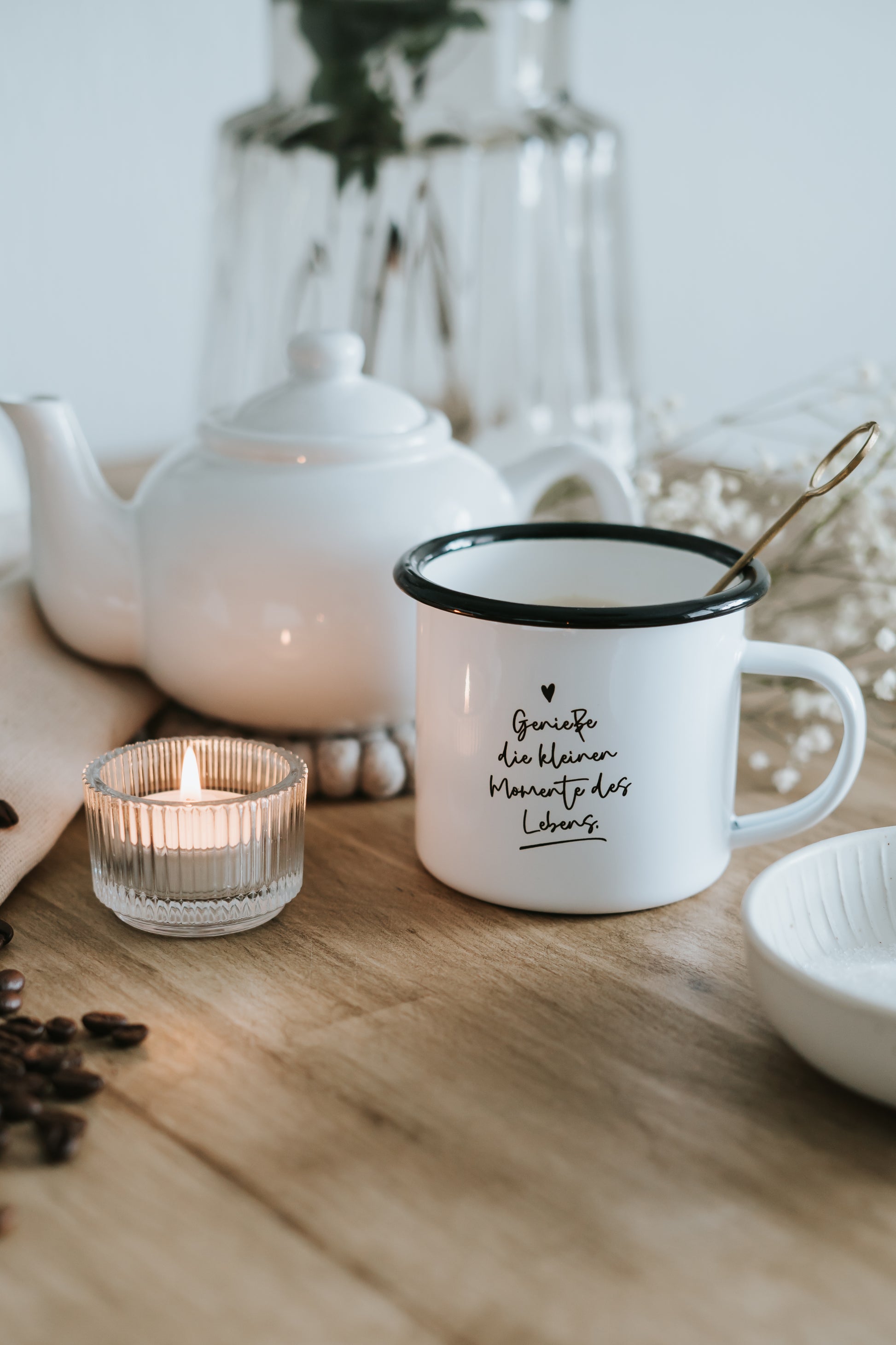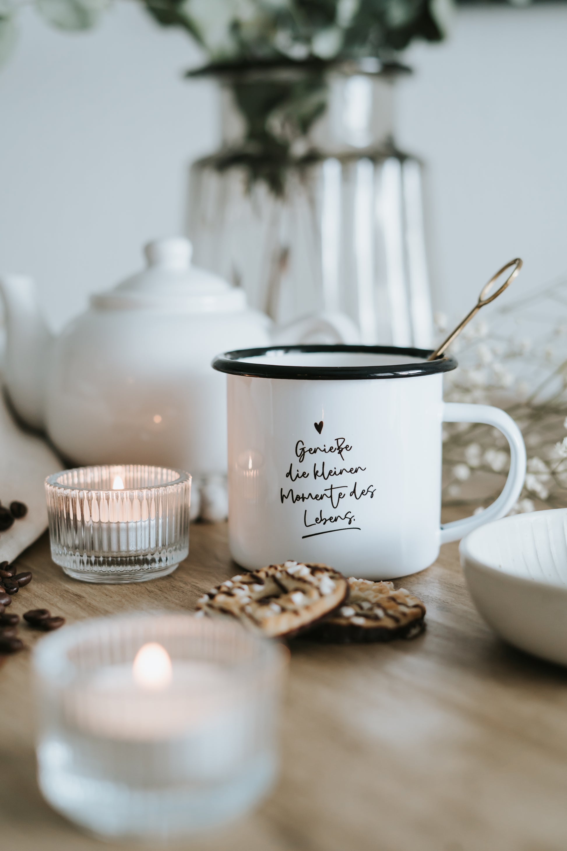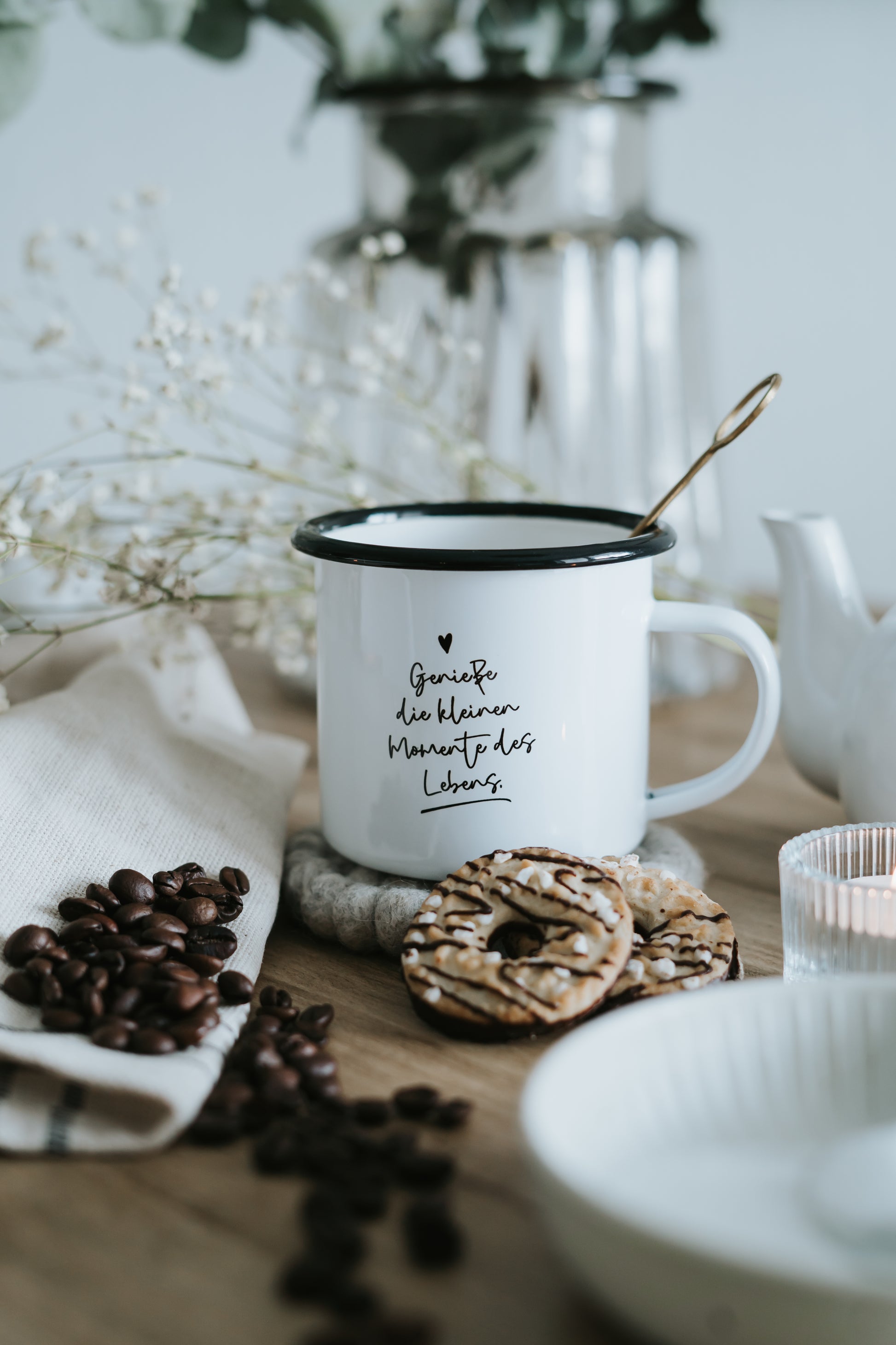 Emaille Tasse "Kleine Momente"