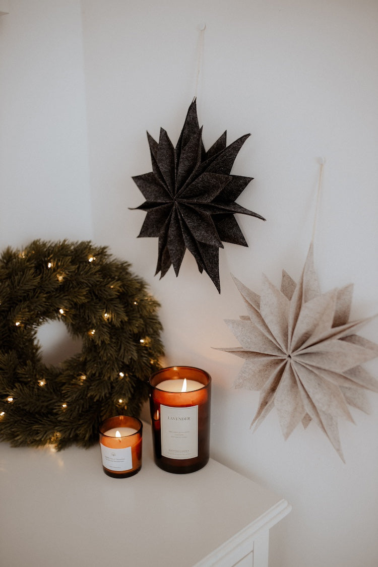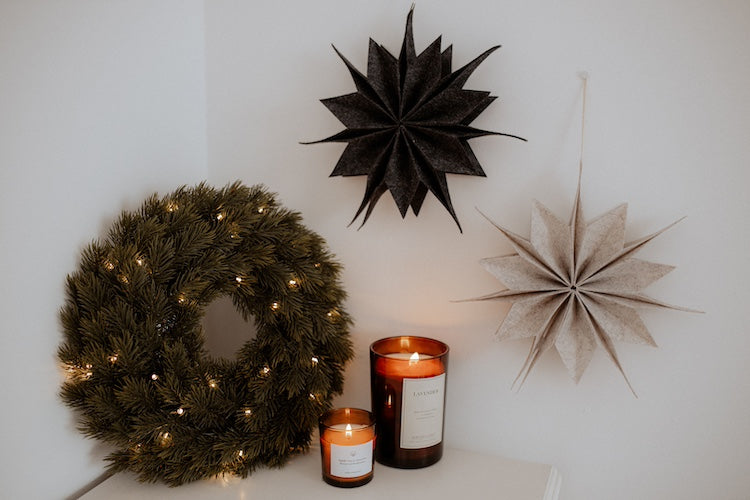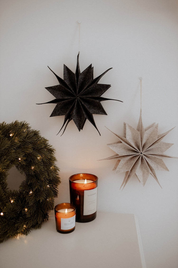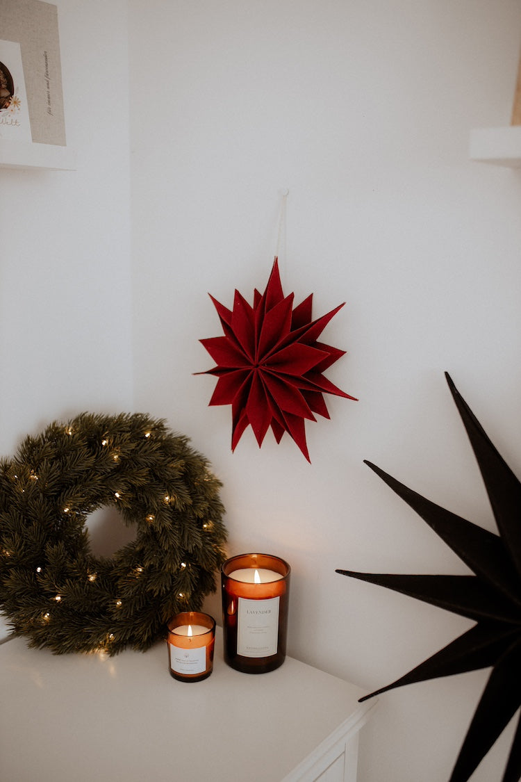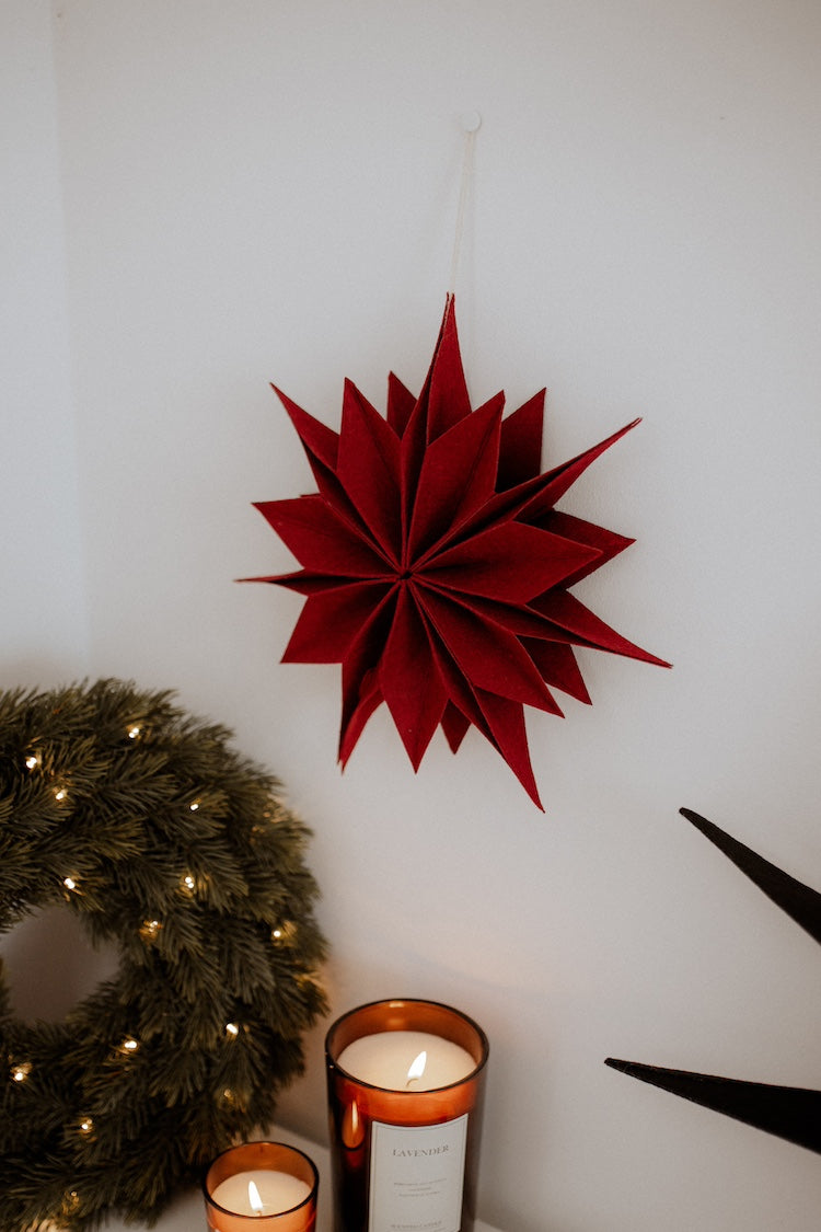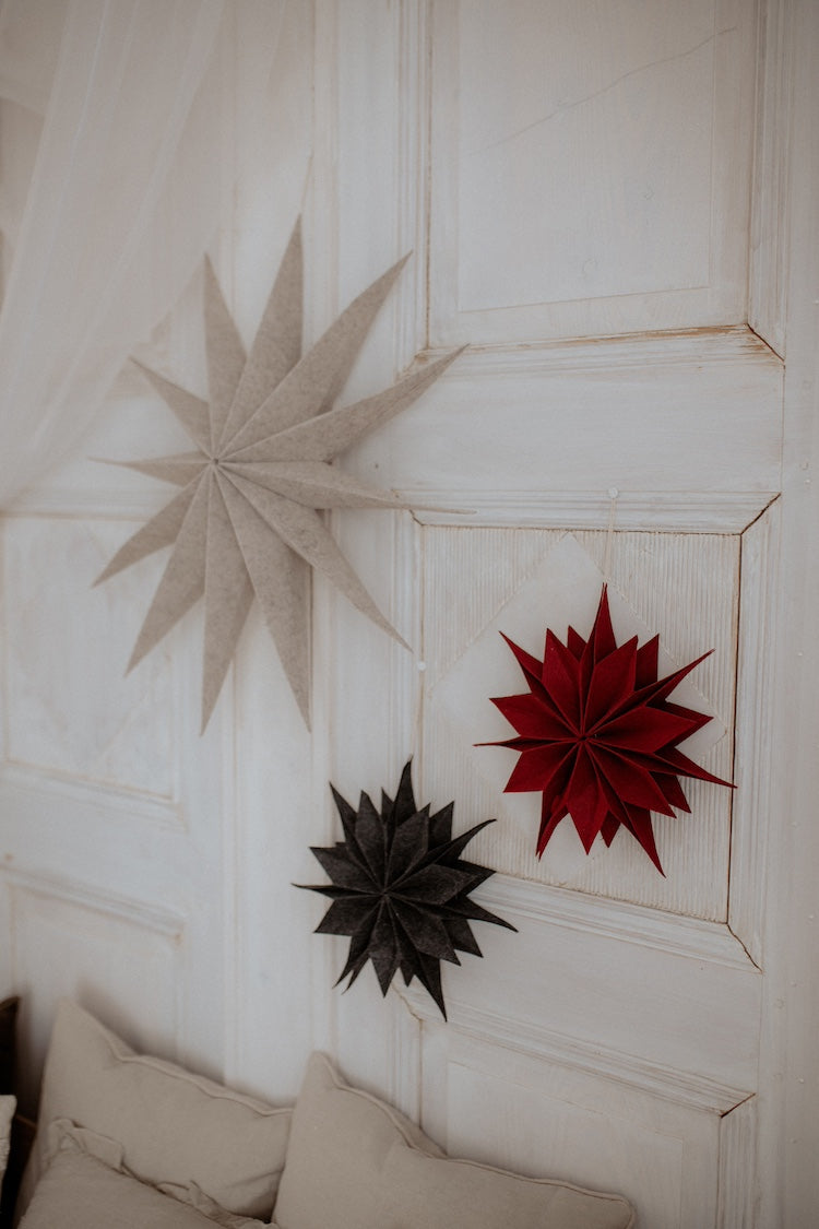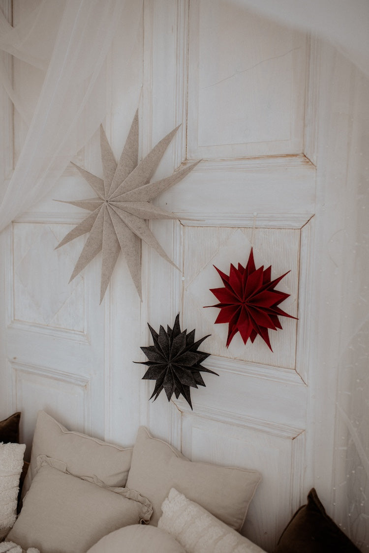 Sehr schön wirken die Filzsterne, besonders wenn man sie miteinander kombiniert – in Beige, Rot und Anthrazit ergeben sie ein harmonisches Bild. Auch in Kombination mit dem großen 60 cm Stern sehen sie wunderbar festlich aus und runden die Weihnachtsdeko perfekt ab.