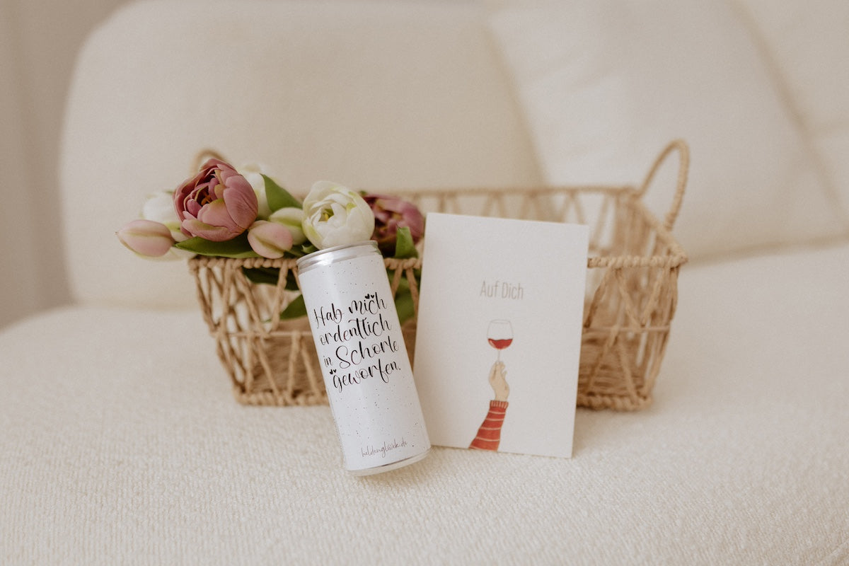 Mit dem Spruch „Hab mich ordentlich in Schorle geworfen“ wird sie zum Blickfang mit Augenzwinkern – ob für Geschenkboxen, Events oder als originelle Kleinigkeit mit Aussage.