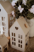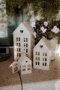 Verleihe deinem Wohnraum einen Hauch von Eleganz und Gemütlichkeit mit unserem stilvollen Dreier-Set Laternenhäuschen in drei verschiedenen Größen (13 cm, 24 cm und 35 cm hoch). Diese modernen Laternen sind nicht nur dekorativ, sondern auch funktional: Sie lassen sich seitlich öffnen und bieten Platz für eine Kerze oder Lichterkette die in Sekunden für stimmungsvolles Licht sorgt.