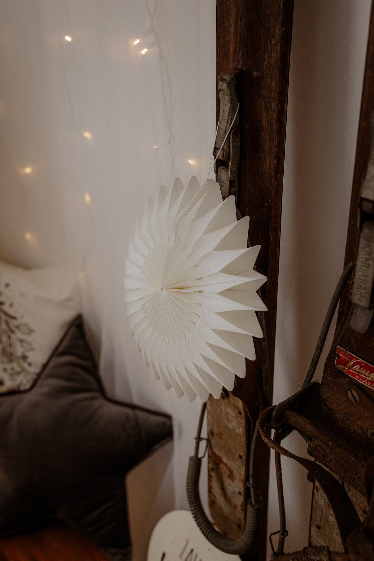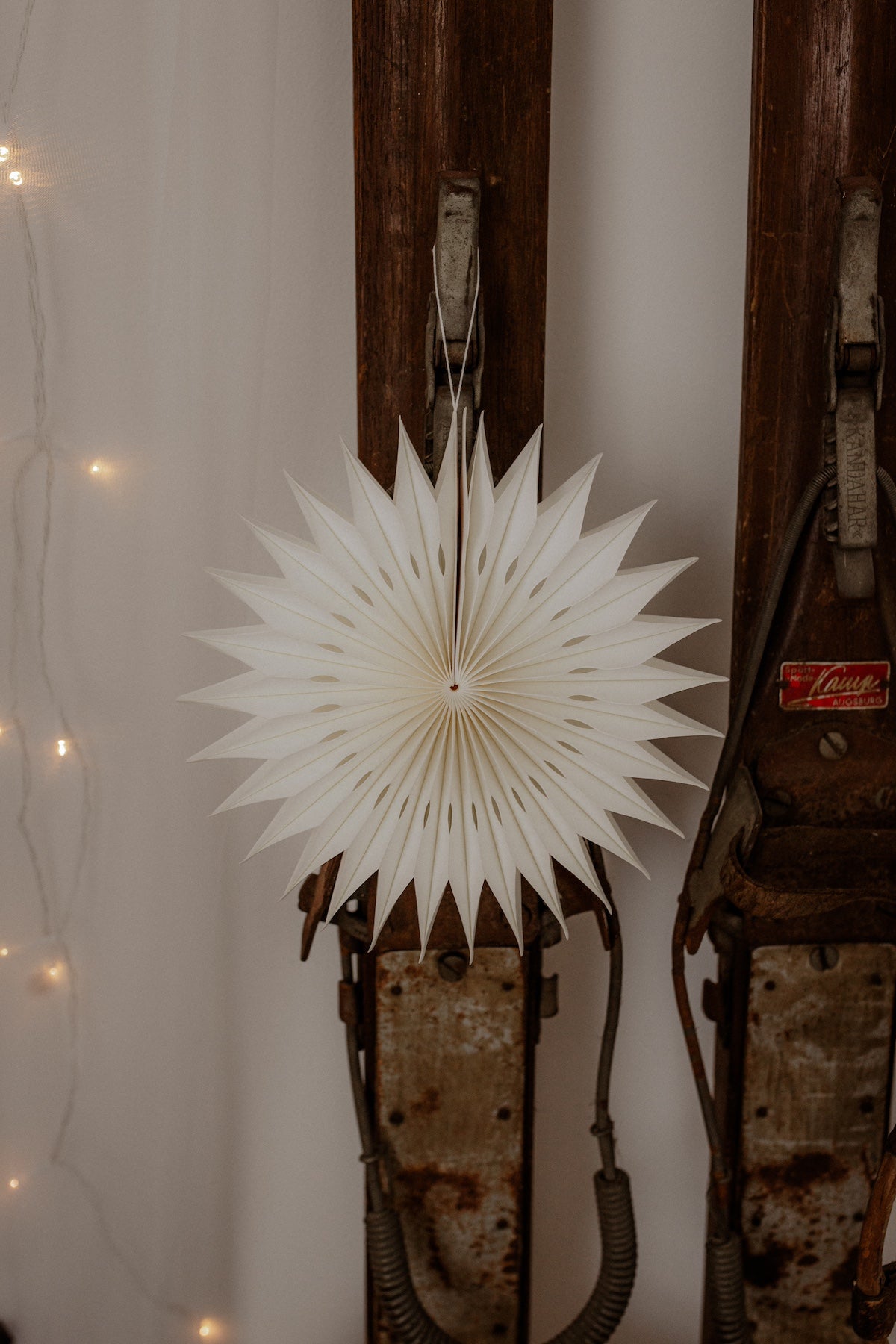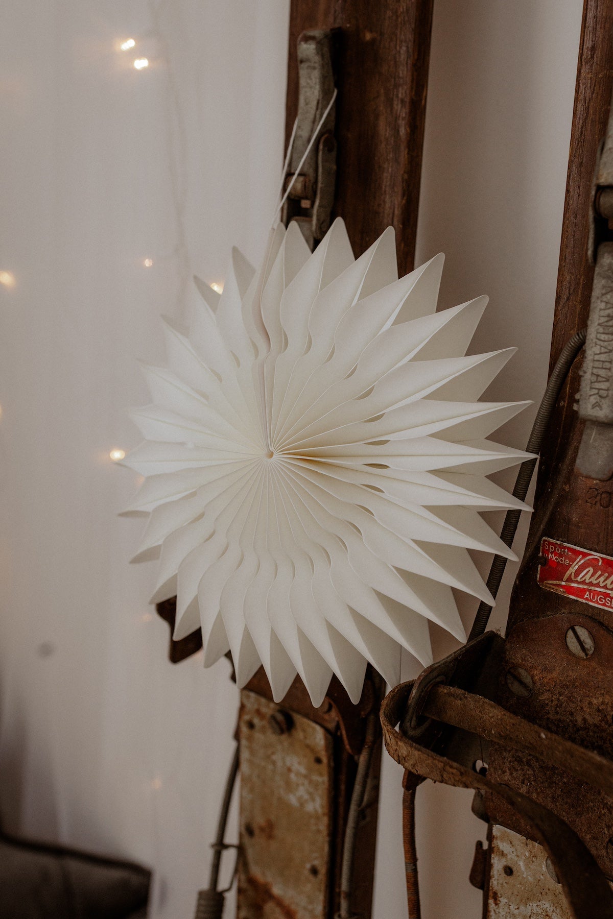 Schaffe mit unserem eleganten magnetischen Papierstern in strahlendem Weiß eine besondere Atmosphäre in deinem Zuhause oder Geschäft. Mit einem Durchmesser von 20 cm ist dieser stilvolle Stern perfekt für verschiedene Anlässe – sei es für festliche Weihnachtsdeko, Hochzeiten oder einfach zur Verschönerung deiner Räume.
