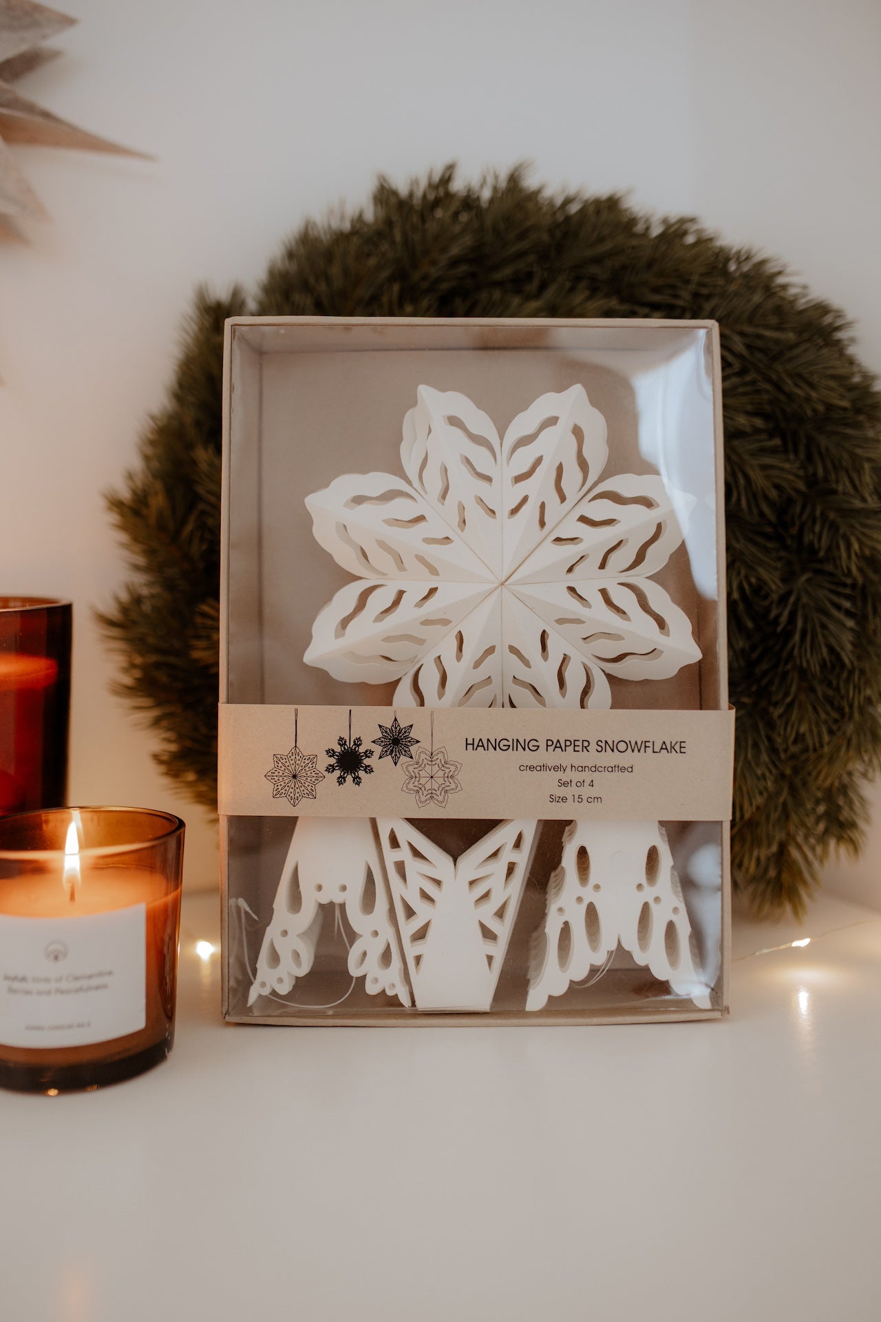 Entdecke unser bezauberndes Viererset von Weihnachtsanhängern in Form von Schneeflocken aus hochwertiger Papier-Pappe! Diese eleganten Anhänger in reinem Weiß messen jeweils 15 × 15 × 2 cm und sind die perfekte Ergänzung für Ihre festliche Dekoration.