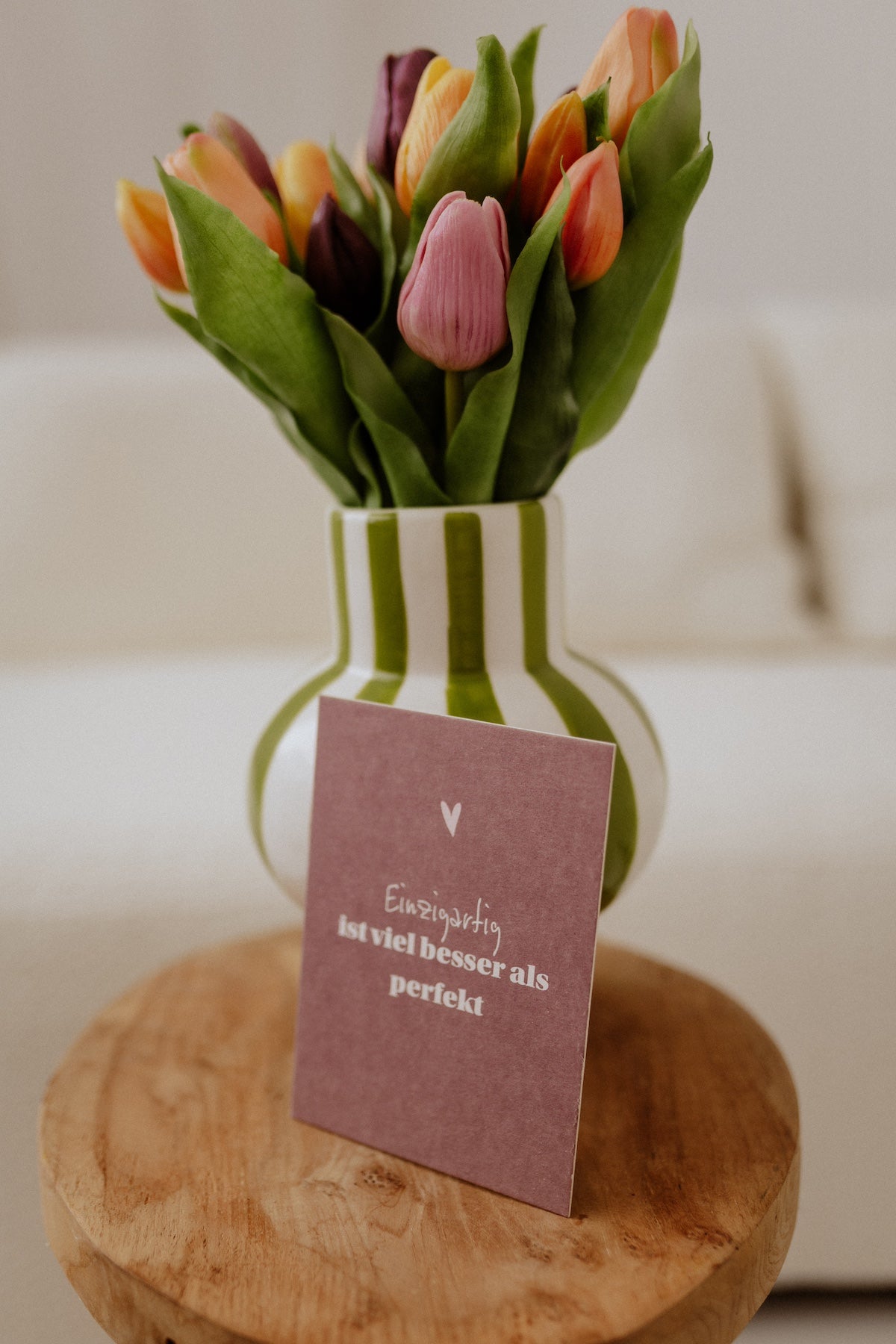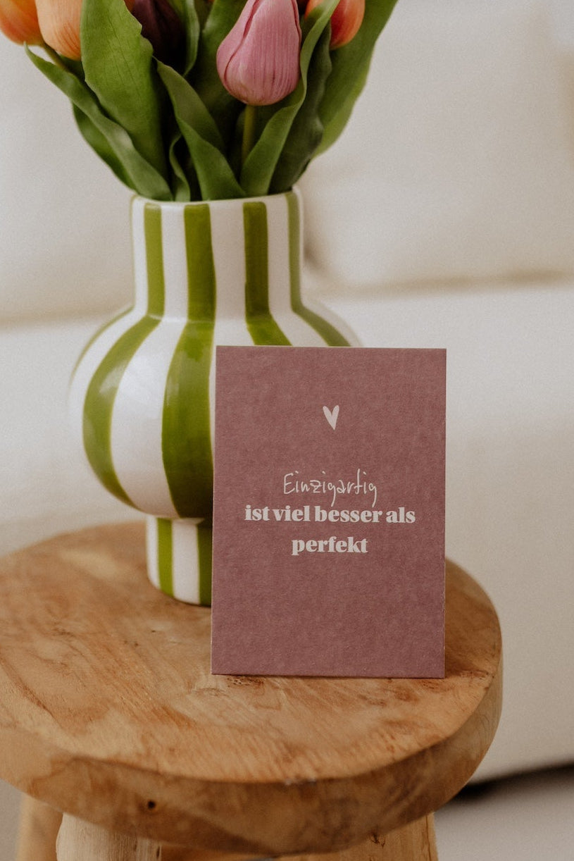 Diese Postkarte ist mehr als nur ein dekoratives Stück Papier; sie ist ein Aufruf, sich selbst zu lieben und die eigene Einzigartigkeit zu schätzen! Gerade in einer Welt, die oft nach Perfektion strebt, lädt sie dazu ein, das Authentische zu umarmen und zu zeigen, dass wir alle unsere eigenen, einzigartigen Geschichten erzählen.