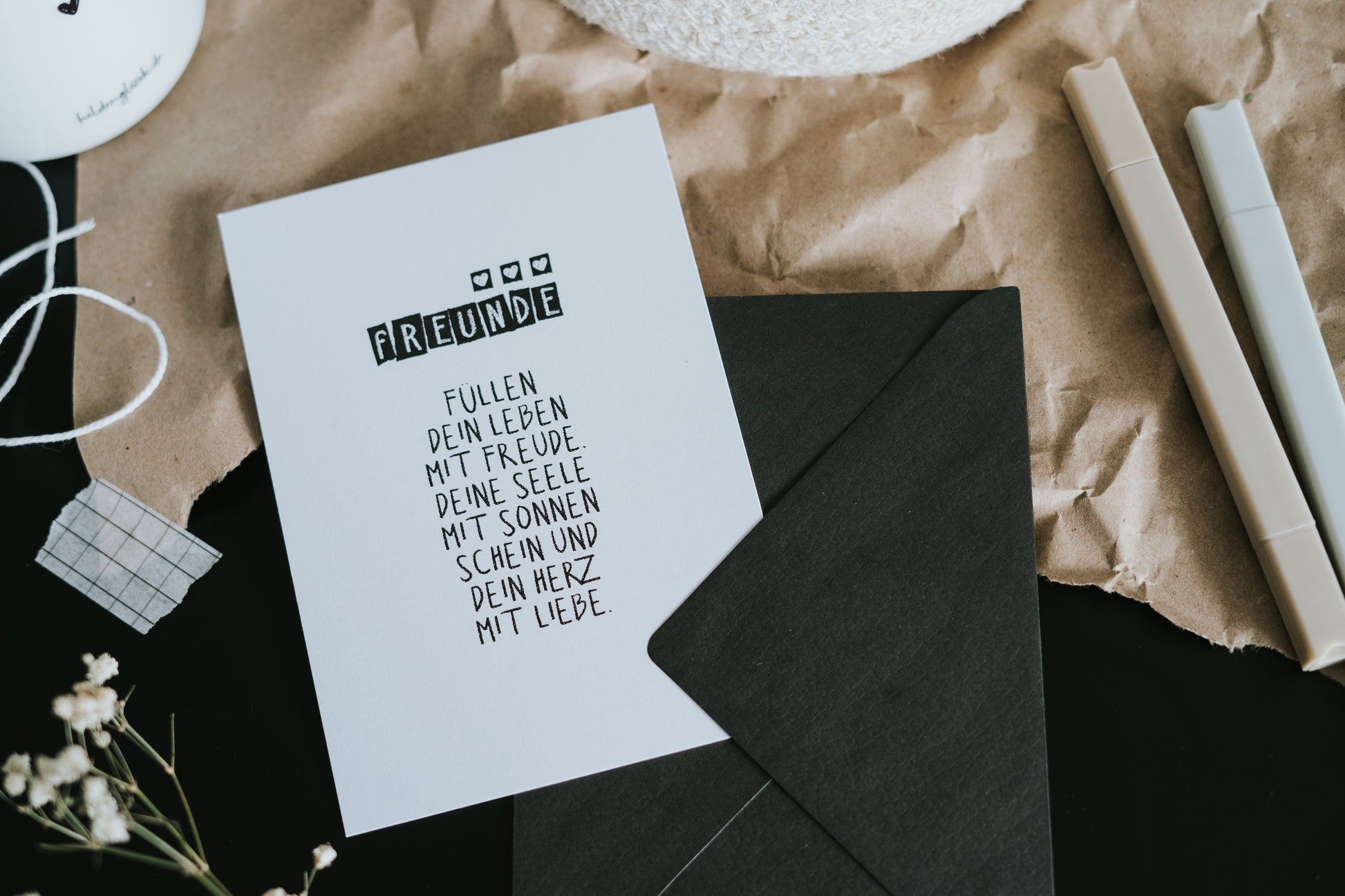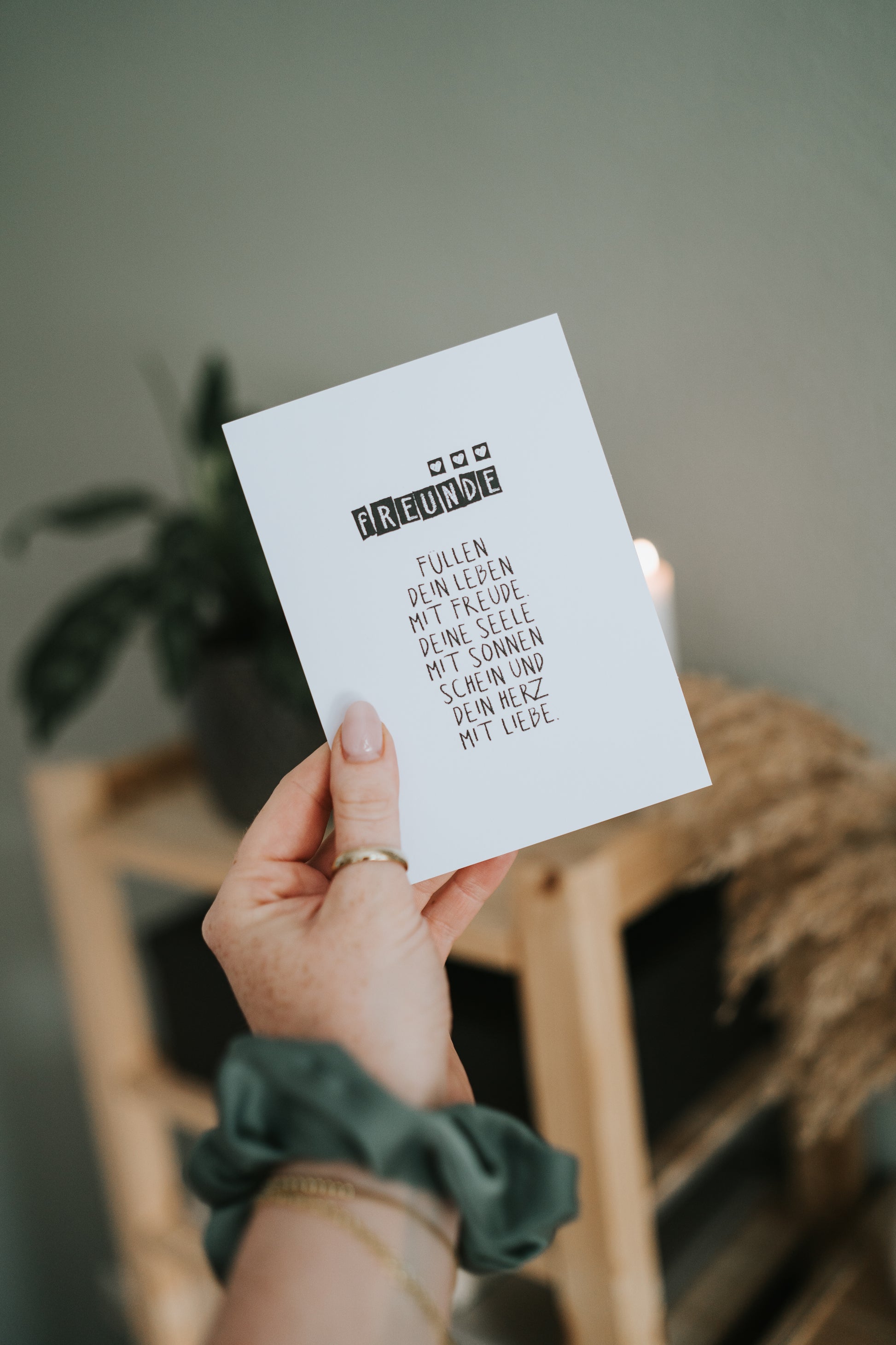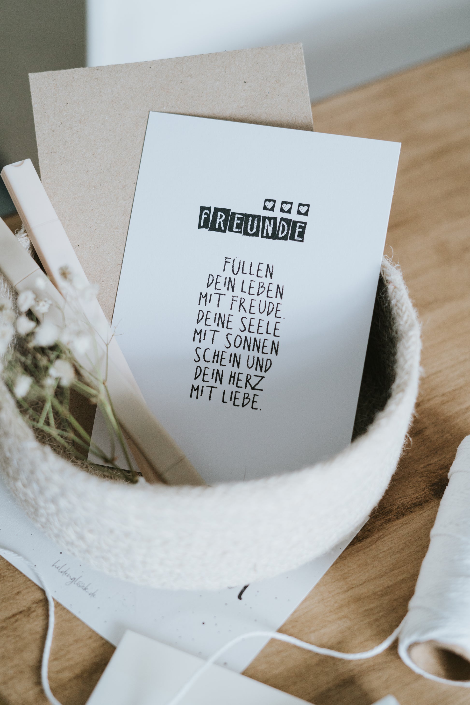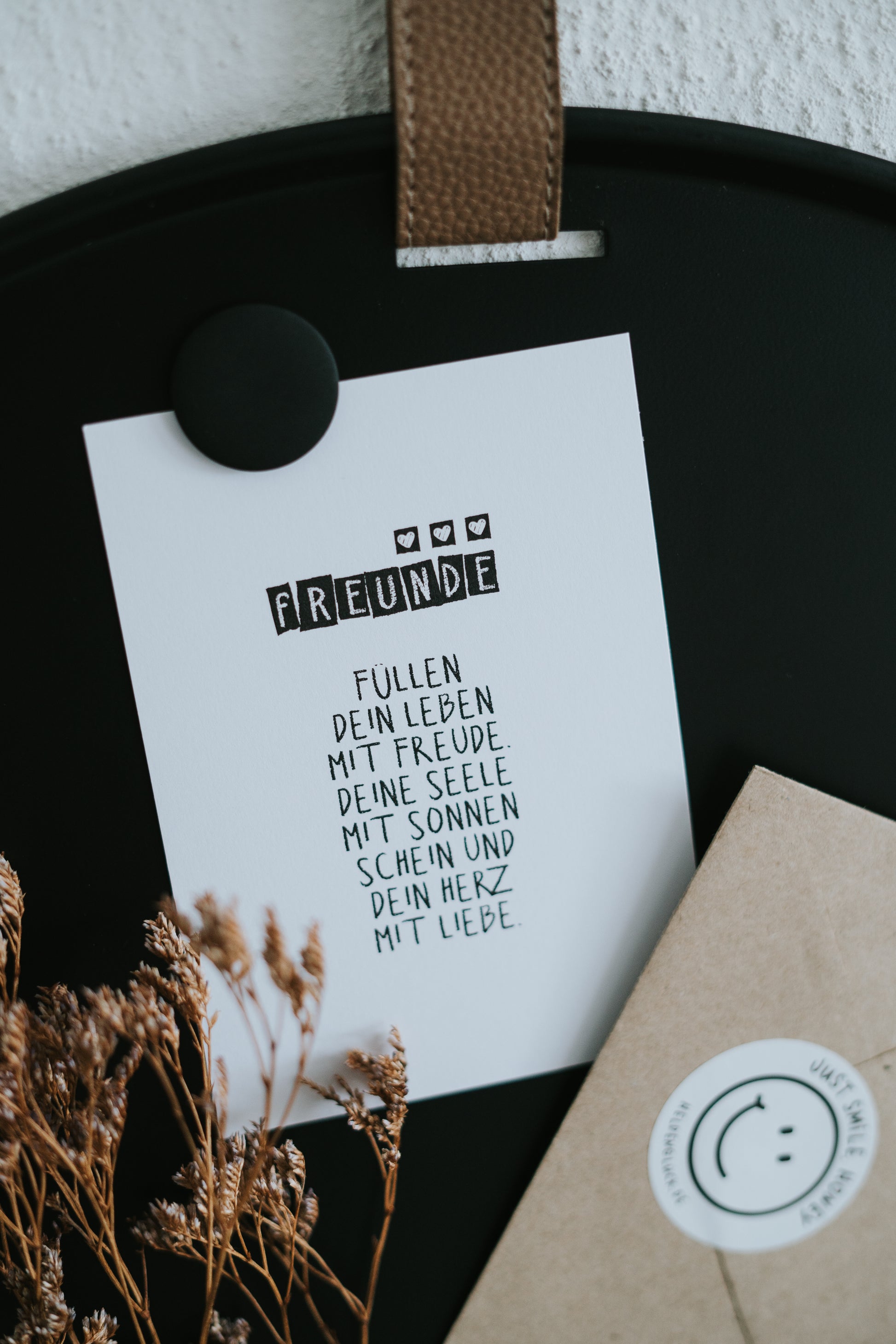 Stell dir vor, du schickst deiner besten Freundin, einem Herzensmenschen oder einem langjährigen Wegbegleiter diese Karte. „Freunde füllen dein Leben mit Freude…“ steht da – eine ehrliche, liebevolle Erinnerung an das, was wirklich zählt. Als kleine Aufmerksamkeit zwischendurch, zum Geburtstag oder einfach so: Diese Postkarte ist eine zarte Geste voller Wertschätzung. Gedruckt auf 400 g FSC-zertifiziertem Naturpapier, CO₂-neutral produziert und in Deutschland gestaltet – für ein Geschenk, das von Herzen kommt und nachhaltig Freude macht.