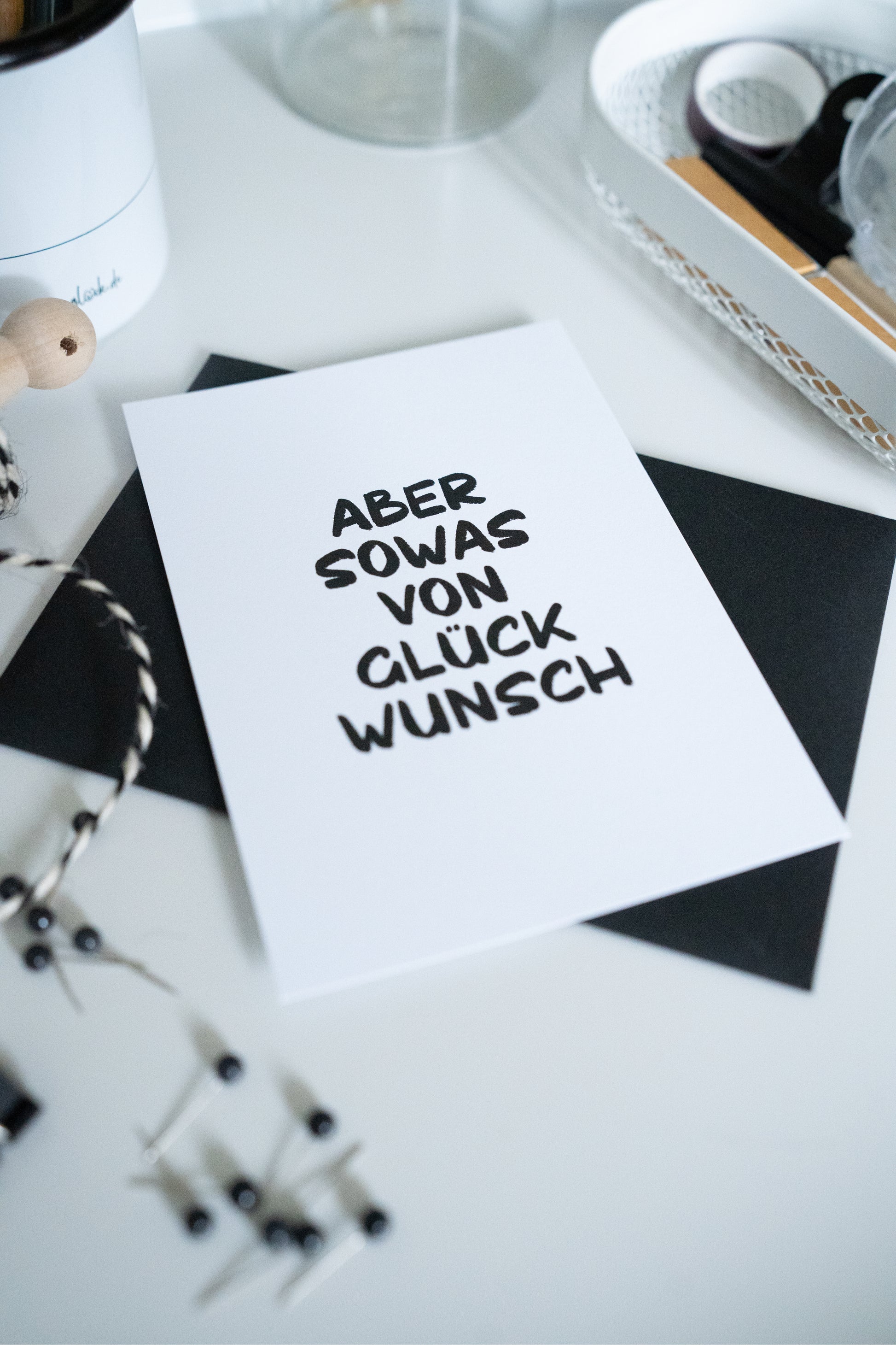 Es gibt immer etwas zu feiern! Unsere stilvolle Postkarte "Aber sowas von Glückwunsch" ist der perfekte Begleiter für jeden freudigen Anlass. Einfach reinschreiben, was das Herz sagt, und Freude schenken!