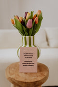 Die Postkarte „Grund zum lächeln“ ist ein stiller Lichtblick – ein einfacher Impuls mit tiefer Wirkung. Auf roséfarbenem Hintergrund steht das Wort für sich, klar und ruhig gesetzt, ganz ohne Motiv. Diese reduzierte Gestaltung verleiht der Karte eine besondere Präsenz und macht sie zu einem kleinen Mutmacher für zwischendurch.