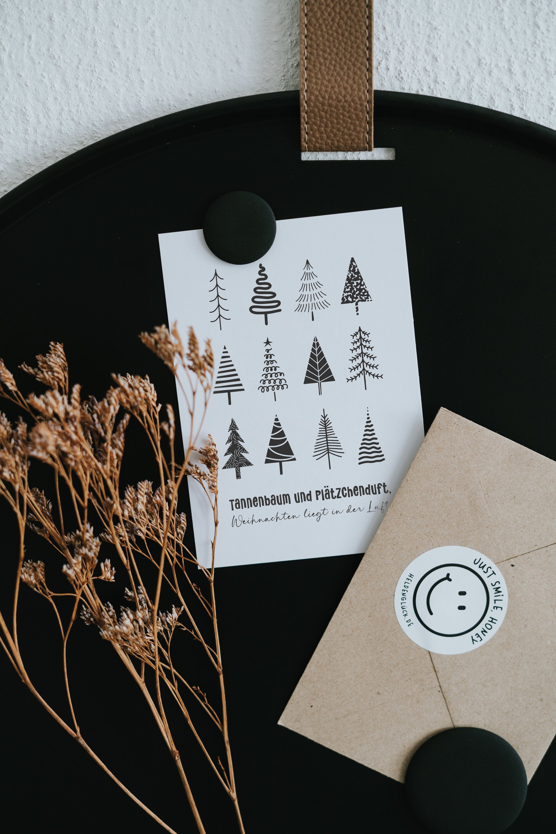 Unsere weihnachtliche Postkarte mit dem Spruch "Tannenbaum und Plätzchenduft, Weihnachten liegt in der Luft" fängt die Magie der festlichen Zeit perfekt ein. Mit dieser Karte schickst du deinen Liebsten den Zauber von Tannengrün, Plätzchen und Weihnachtsfreude direkt ins Herz.