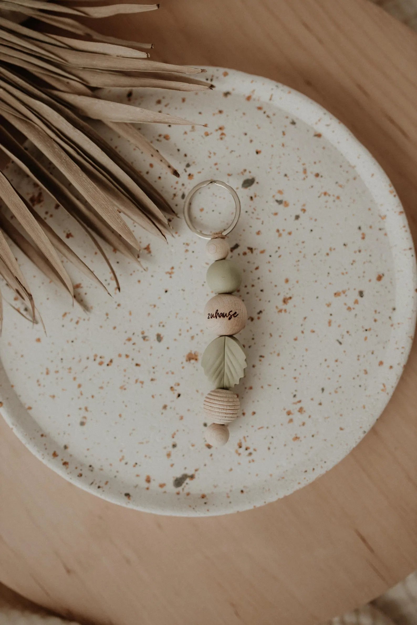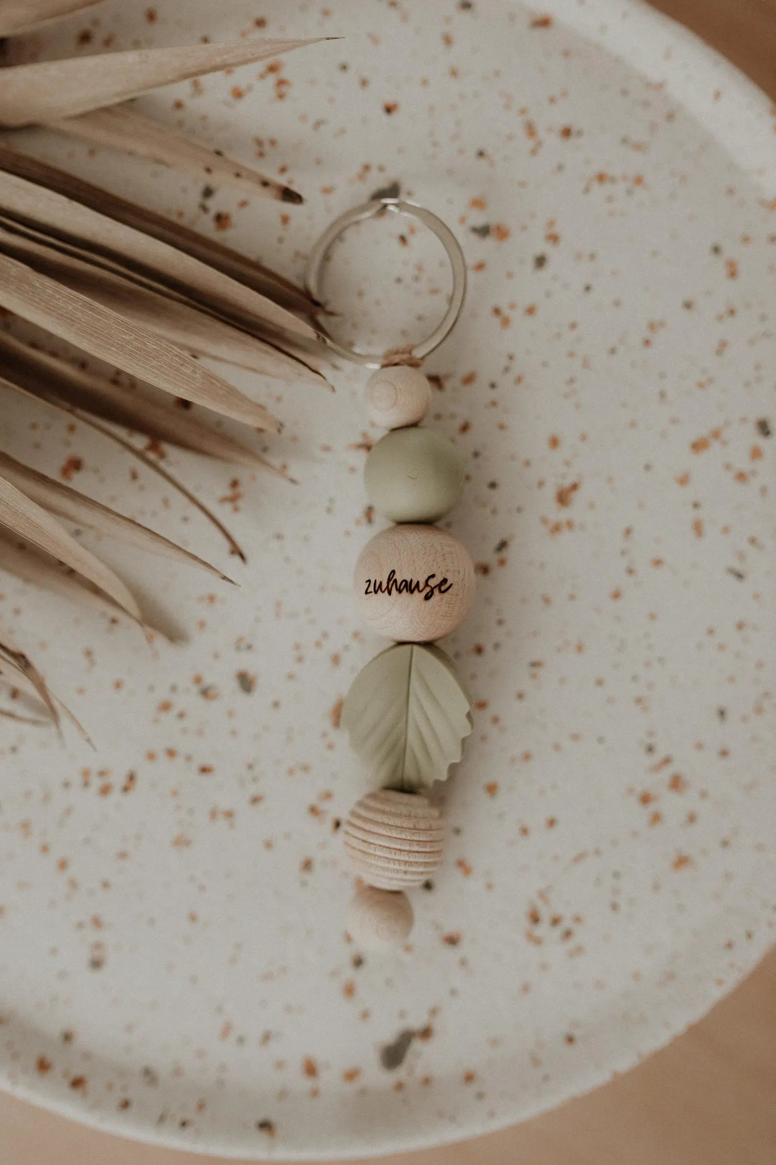 Hol dir diesen herrlichen Schlüsselanhänger, der nicht nur ein praktischer Begleiter für deine Schlüssel ist, sondern auch ein echtes Statement setzt! Gefertigt aus feinen Ahornholzperlen, bringt er mit einer Salbeifarbenen Perle und einem eleganten Blattmotiv die Natur direkt in deinen Alltag.