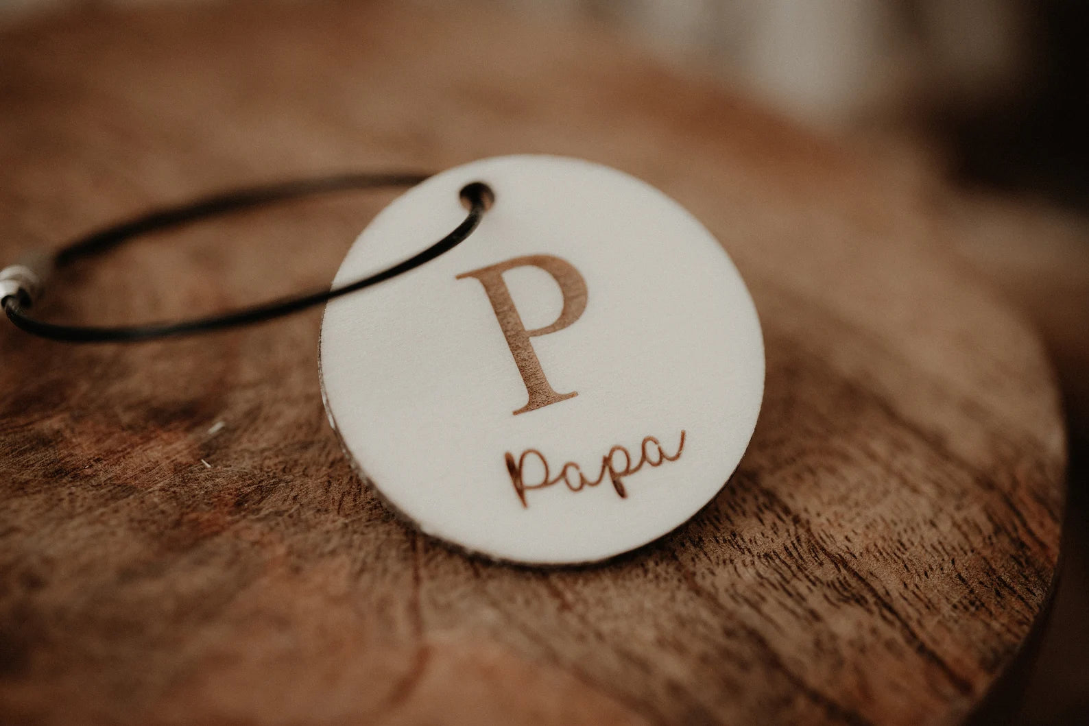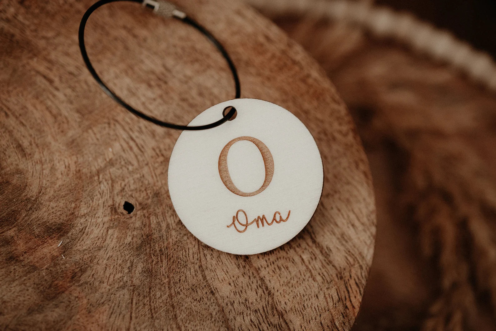 Bist Du auf der Suche nach einem ganz besonderen Geschenk? Dann gibst du mit diesem Holzschlüsselanhänger genau richtig. Es kann „Oma,Opa,Mama,Papa, Tante.. oder ein Name eingraviert werden. Einfach das Wunschwort ins Feld Personalisierung eintragen. Der erste Buchstabe wird in groß graviert und das Wort/ der Name in Schreibschrift darunter.