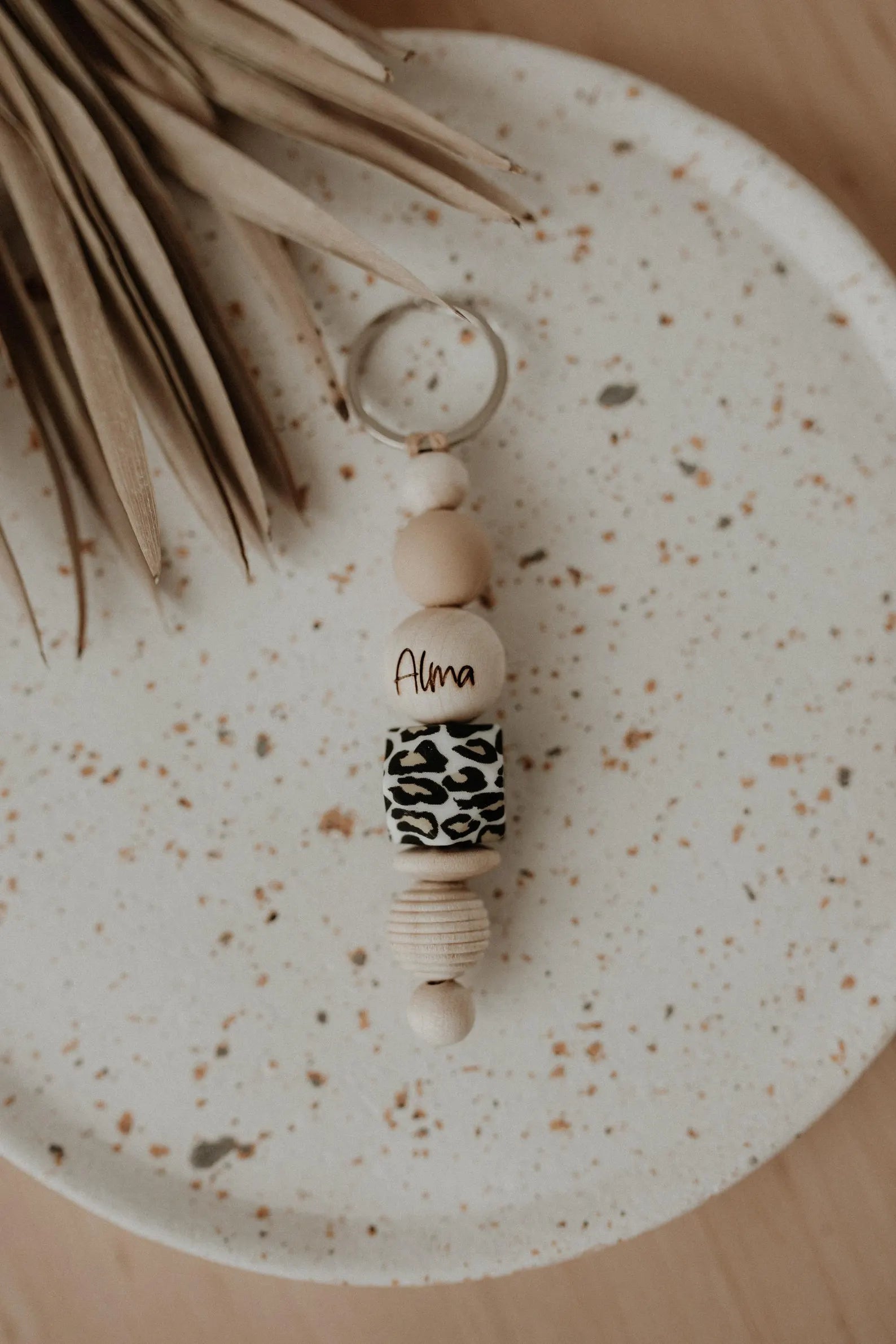 Ein besonderes Highlight ist die Möglichkeit, den Anhänger mit deinem Namen zu personalisieren. Die Gravur erfolgt auf einer 18 mm runden Perle aus hochwertigem Ahornholz, die die exquisite Leopardenperle perfekt ergänzt und für einen einzigartigen Look sorgt.