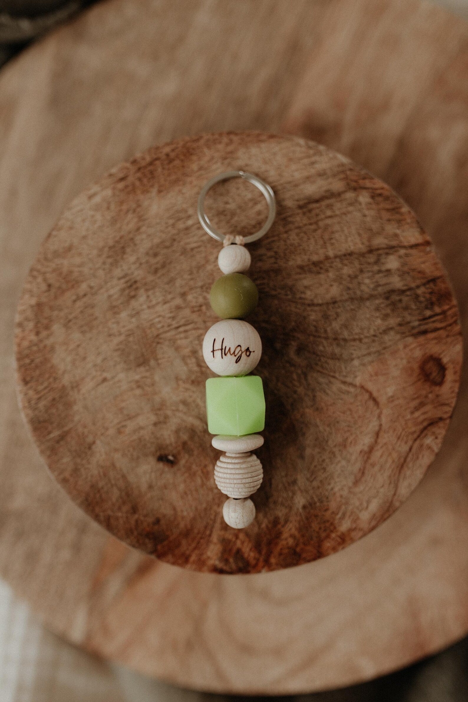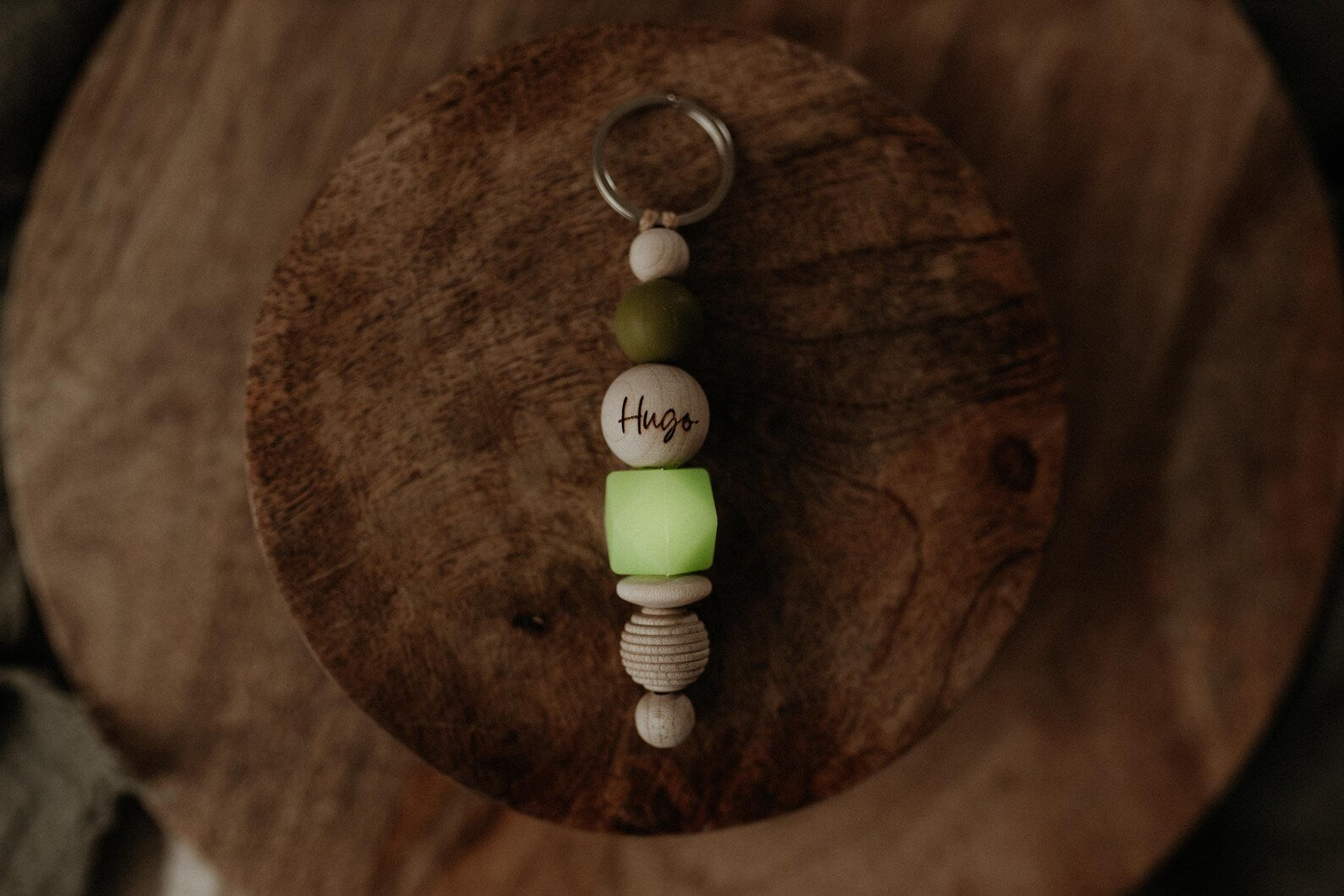 Jeder Schlüsselanhänger kann ganz nach deinem Geschmack individuell gestaltet werden – auf der runden Perle hast du die Möglichkeit, einen Namen oder einen Wunschtext gravieren zu lassen. So wird jeder Schlüsselanhänger zu einem persönlichen Unikat, das nicht nur praktisch ist, sondern auch ein echtes Schmuckstück darstellt.