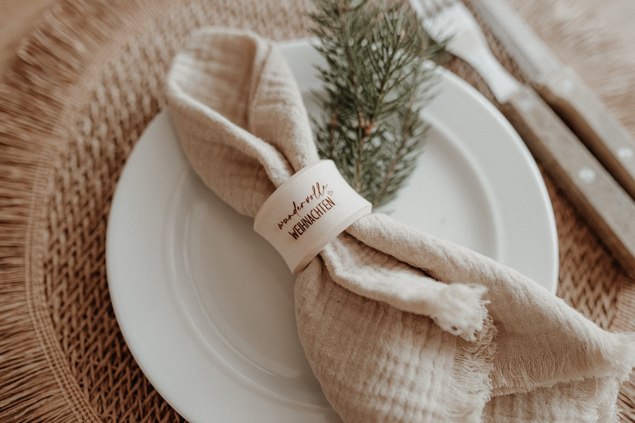 Serviettenringe aus Holz sind eine beliebte Wahl, da sie ein warmes und natürliches Gefühl vermitteln und in vielen verschiedenen Ausführungen erhältlich sind.