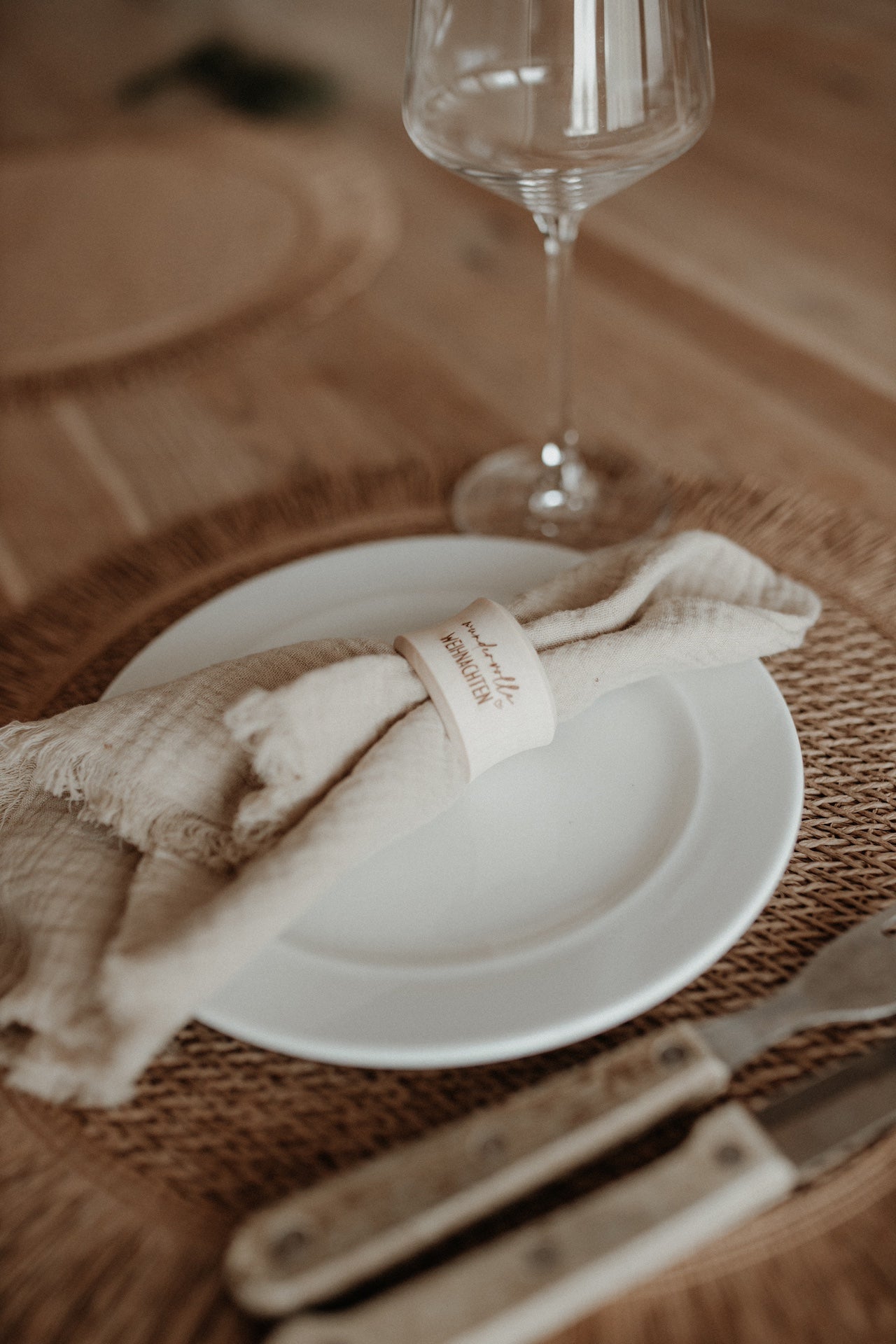 Solltest du eine größere Menge an Serviettenringen oder Musselinservietten benötigen, kontaktiere uns gerne vor deiner Bestellung.📩