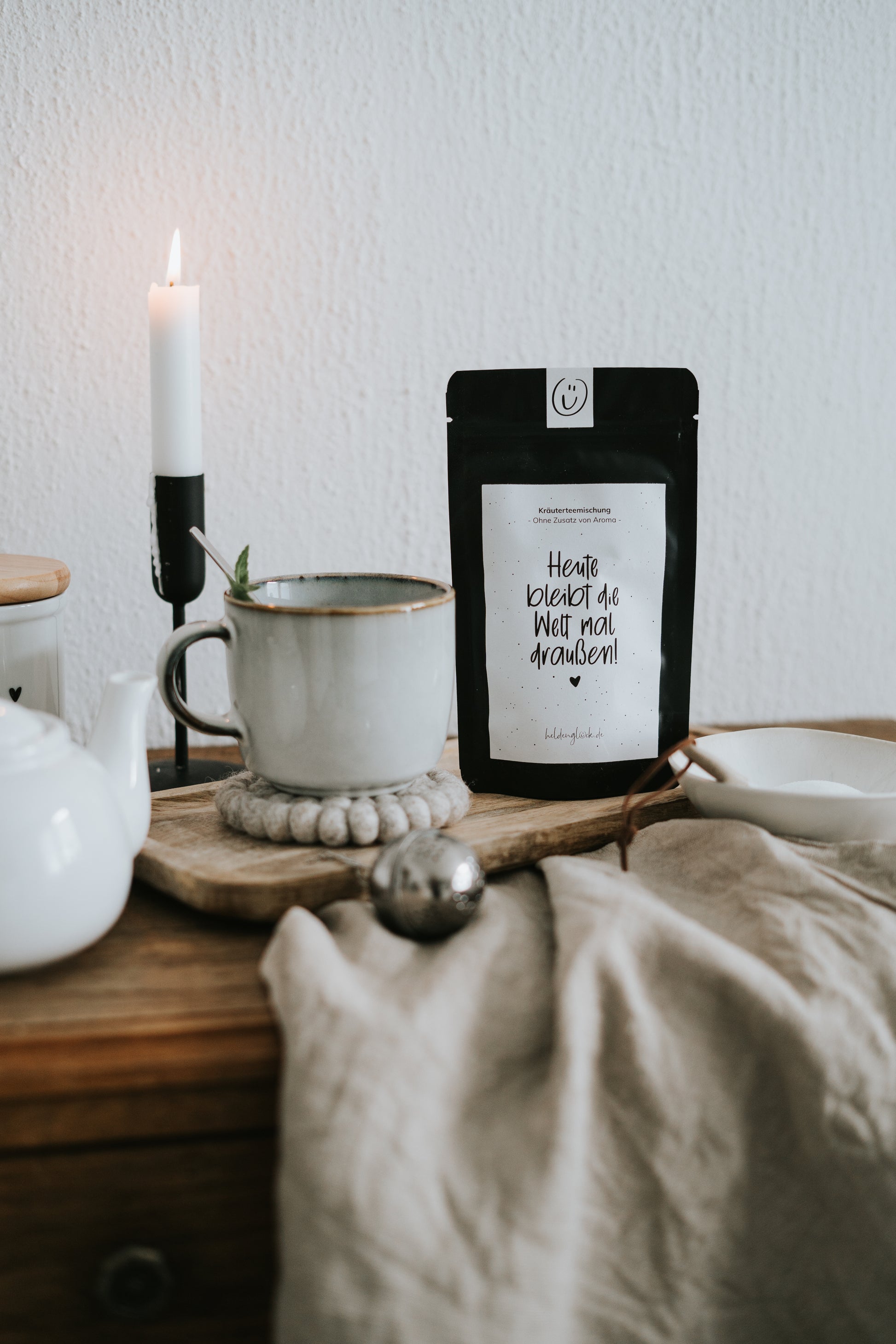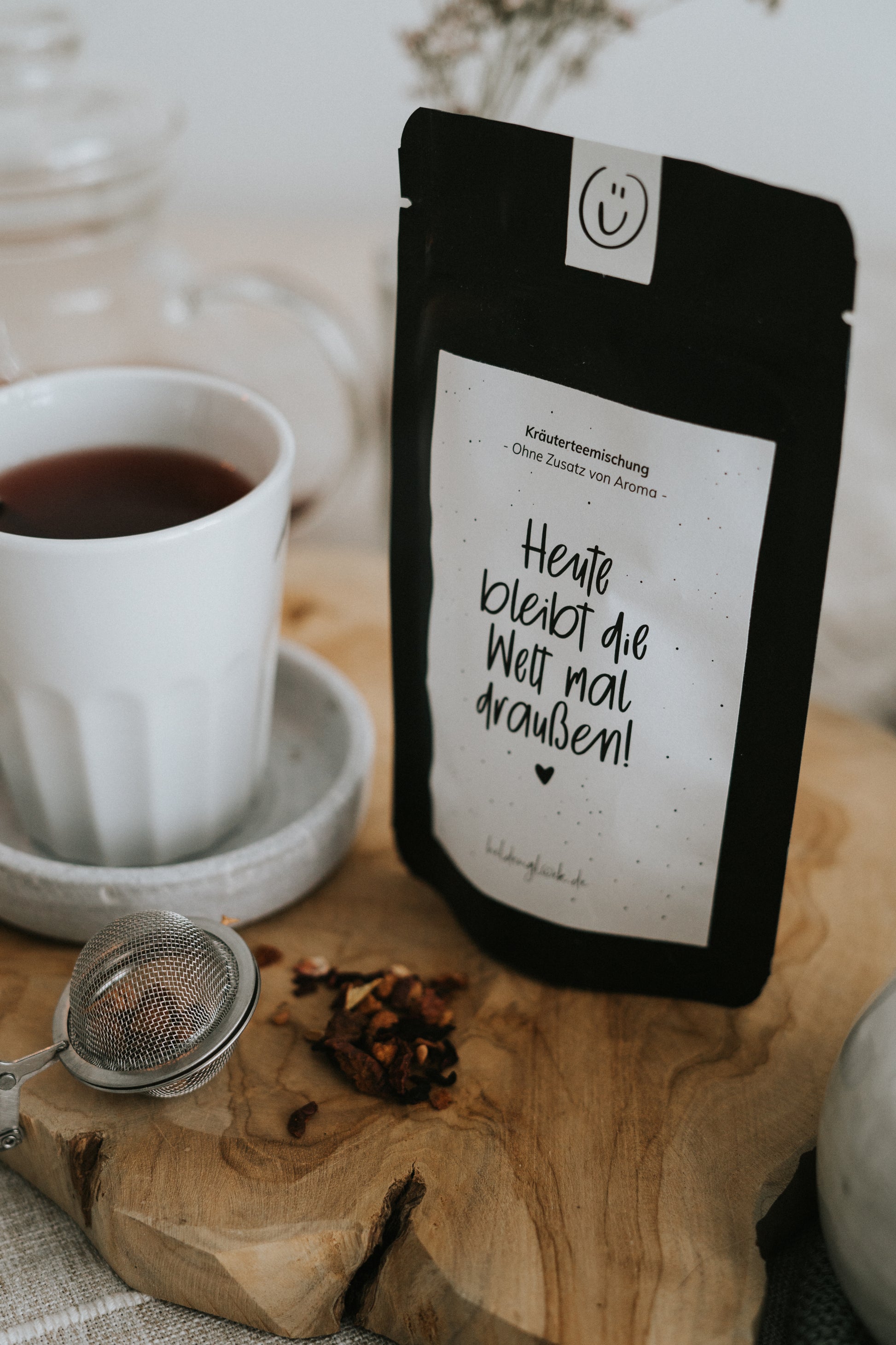 Kräutertee „Heute bleibt die Welt mal draußen“ – Ein Geschenk für Deine Auszeit