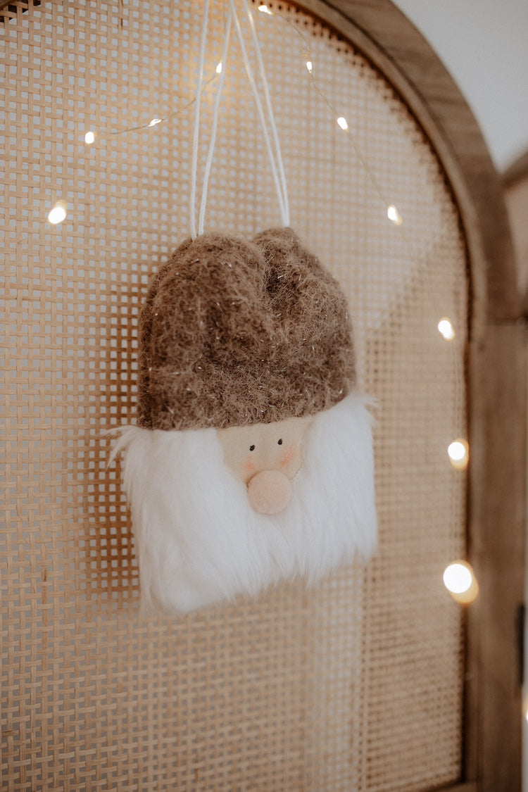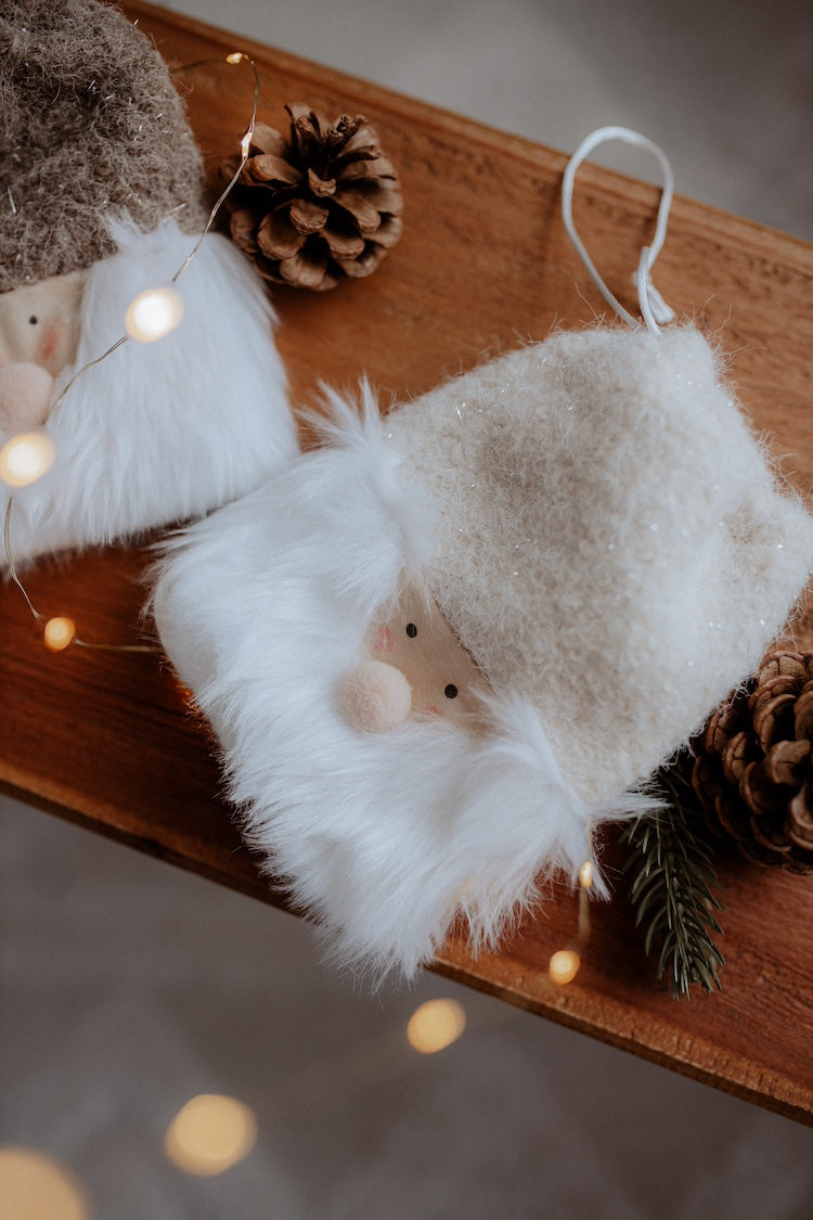 Du kannst zwischen zwei eleganten Farben wählen: klassisches Weiß oder natürliches Braun – beide mit festlichem Weihnachtsmann-Motiv, das für weihnachtliche Stimmung sorgt.