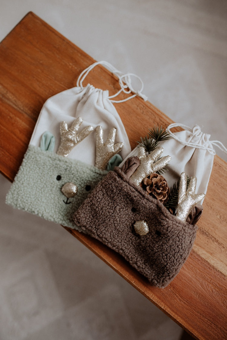 Das verspielte Rentier-Design bringt sofort Weihnachtsstimmung in dein Zuhause und sorgt für strahlende Augen beim Verschenken. Die trendigen Farben Weiß, Braun oder Mint mit skandinavischem Flair machen diesen Beutel zu einem stilvollen Accessoire, das perfekt in jede weihnachtliche Deko passt.